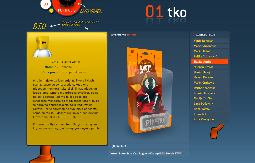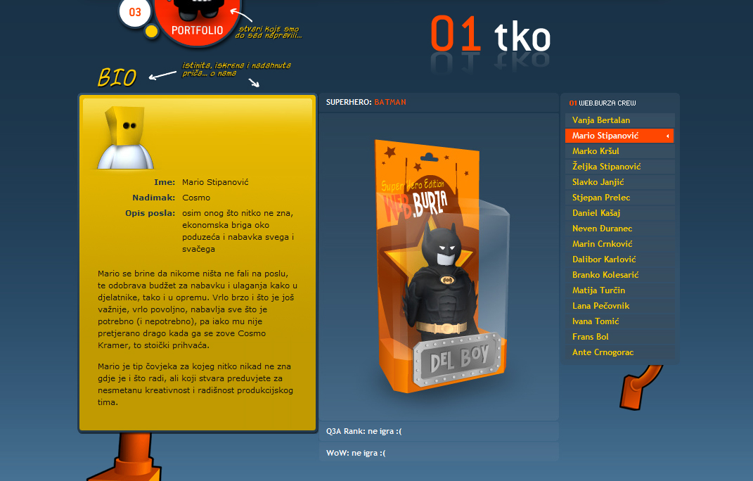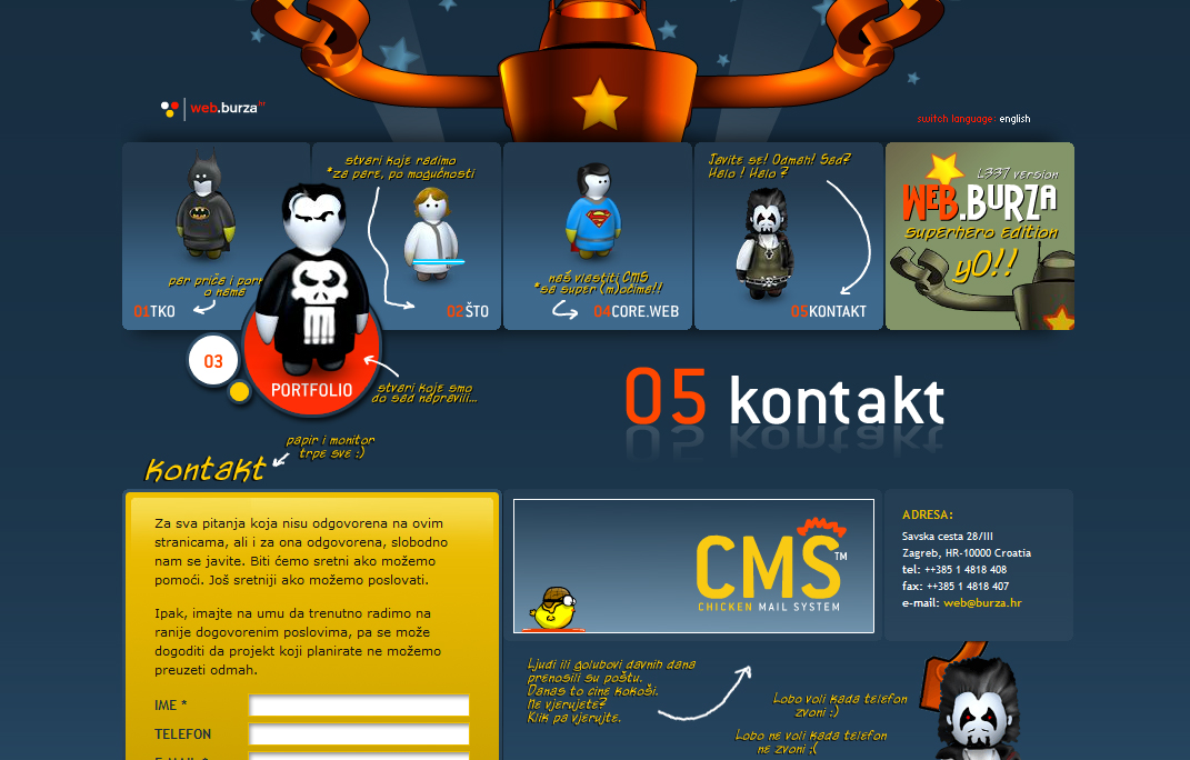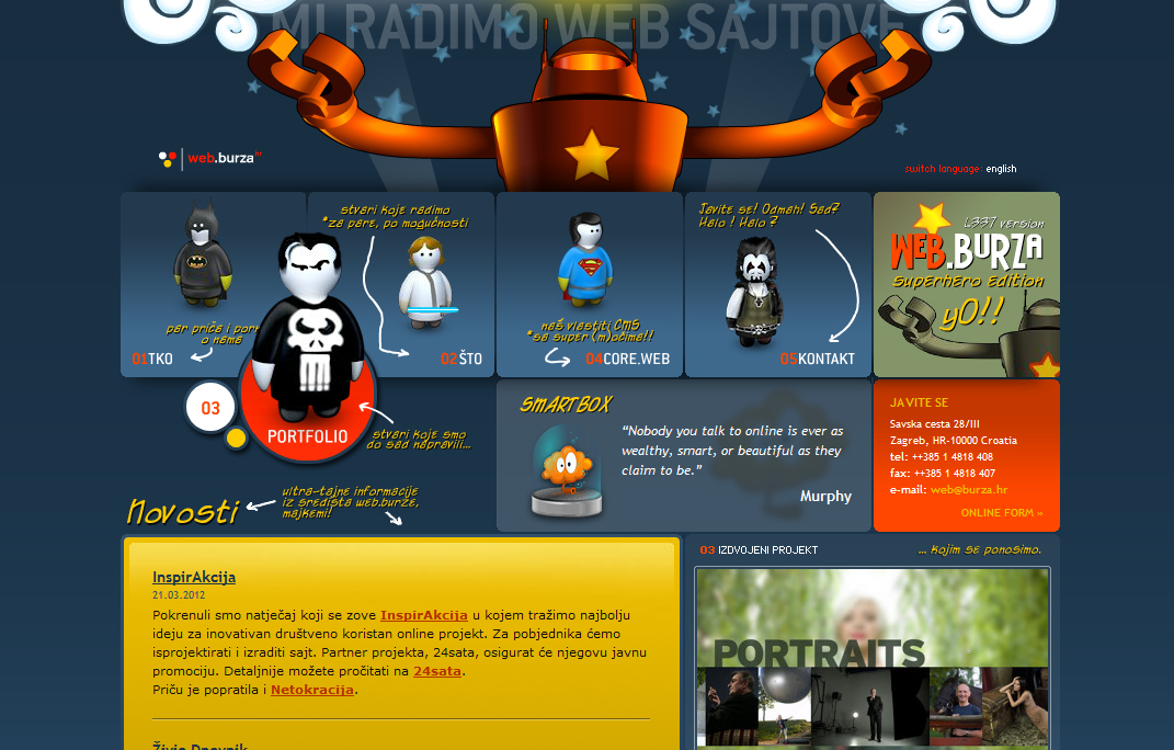Superhero, redizajn sjedišta studija Web.burza, temelji se na računalnim likovima imaginarnih superheroja te na naraciji kojom se objašnjavaju i korisnicima približavaju tehničke specifikacije web produkcije. Studio je razvio vlastiti CMS sustav koji pokreće ovo web sjedište (također i portal mi3dot.org). Sjedište je izvedeno u hibridnoj kombinaciji HTML i Flash tehnologije, gdje su animirani likovi izvedeni kao atraktivne Flash animacije. Dodatno je dostupna i CSS verzija koja je u potpunosti u skladu s web standardima. Sjedište je naišlo na izniman prijem u domaćim i međunarodnim krugovima, nagrađivano je i uvršteno u veliki broj specijaliziranih web portala, časopisa i knjiga.